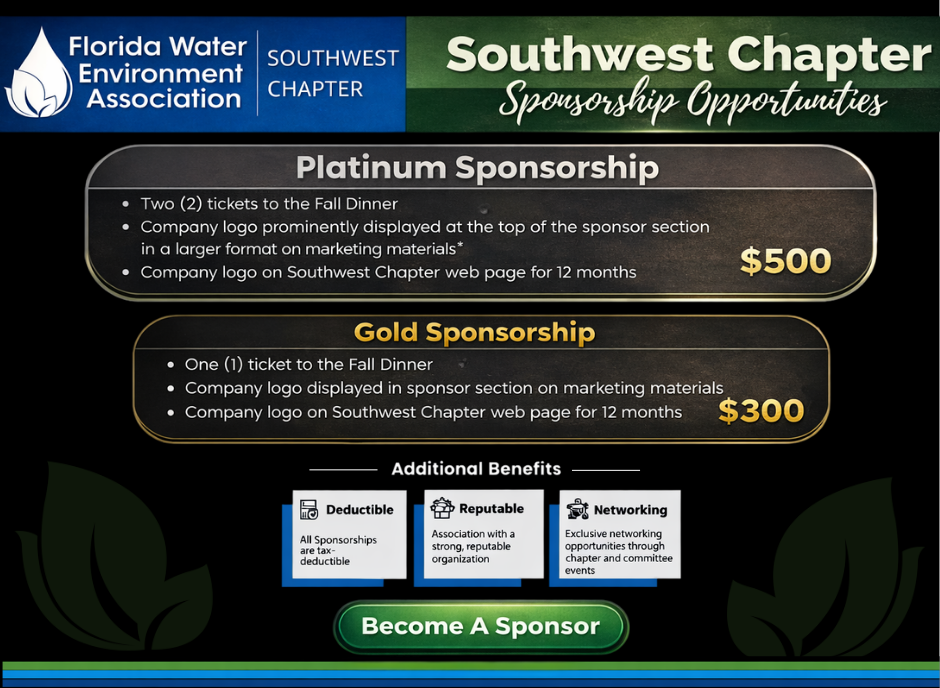 The Southwest Chapter supports and serves FWEA members located in Charlotte, Collier, Glades, Hendry and Lee Counties. We strive to provide activities that reflect the FWEA goals of uniting our members with the public through public awareness and outreach, providing professional development and networking opportunities, and creating alliances to promote sound science-based public policy.